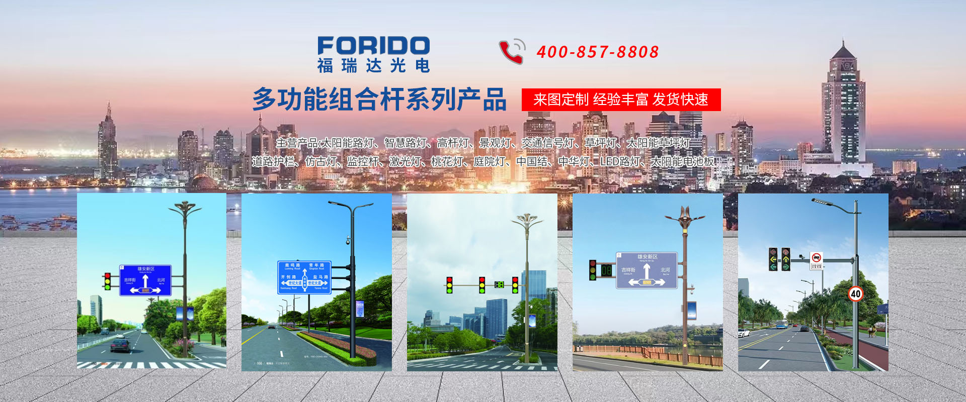 揚(yáng)州福瑞達(dá)光電科技有限公司位于淮左名都?xì)v史文化名城、中國路燈制造基地?fù)P州市北郊菱塘工業(yè)園,公司占地面積76000平方米,注冊(cè)資金10518萬元,擁有高級(jí)技術(shù)嫻熟的員工280多人,擁有大型折彎?rùn)C(jī)、激光切割、數(shù)控注塑機(jī)、壓鑄機(jī)、自動(dòng)埋弧焊、氣焊、彩色粉末靜電噴塑等大型自動(dòng)化設(shè)備,我公司是一家集設(shè)計(jì)、研發(fā)、生產(chǎn)、銷售、施工安裝服務(wù)為一體的戶外交通照明產(chǎn)品制造商,主要生產(chǎn)智慧路燈、太陽能路燈、LED路燈、高桿燈、景觀燈、交通信號(hào)燈、交通標(biāo)志牌、通信鐵塔、路跨鋼結(jié)構(gòu)、公交站臺(tái)、太陽能光伏組件、景點(diǎn)亮化、樓宇亮化工程的設(shè)計(jì)施工等。公司秉承開拓創(chuàng)新、銳意進(jìn)取、精誠服務(wù)的企業(yè)精神,堅(jiān)持以“誠信為本、技術(shù)為先、服務(wù)是金”的合作理念,我們憑借先進(jìn)的制造工藝、優(yōu)質(zhì)的產(chǎn)品質(zhì)量、合理的市場(chǎng)價(jià)格和完善的售后服務(wù)贏得了廣闊的市場(chǎng)和客戶的信賴?! ∥夜疽淹ㄟ^ISO9001質(zhì)量體系認(rèn)證、ISO14001環(huán)境管理體認(rèn)證,CQC產(chǎn)品認(rèn)證,中國節(jié)能產(chǎn)品認(rèn)證,通過“CCC”強(qiáng)制性產(chǎn)品認(rèn)證,具有市政總承包,照明,交安,設(shè)計(jì)等資質(zhì)···